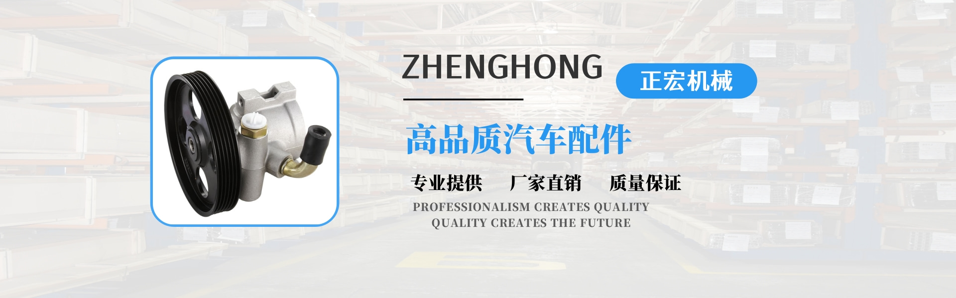 正宏機(jī)械有限公司成立于2004年,是一家新興的技術(shù)型企業(yè),專業(yè)生產(chǎn)動力轉(zhuǎn)向泵。我們是一家集設(shè)計、生產(chǎn)、貿(mào)易于一體的專業(yè)公司,同時享有進(jìn)出口權(quán)。  公司自成立以來,堅持以技術(shù)為導(dǎo)向,以高起點為原點;把產(chǎn)品創(chuàng)新和質(zhì)量管理放在首位。擁有國內(nèi)先進(jìn)的汽車動力轉(zhuǎn)向泵專業(yè)生產(chǎn)設(shè)備和檢測設(shè)備。憑借經(jīng)驗豐富的技術(shù)團(tuán)隊,我們已經(jīng)設(shè)計了20多個系列,近數(shù)百個動力轉(zhuǎn)向泵。年產(chǎn)10萬臺。產(chǎn)品深受廣大客戶的信賴和好評,得到了廣大客戶的認(rèn)可。